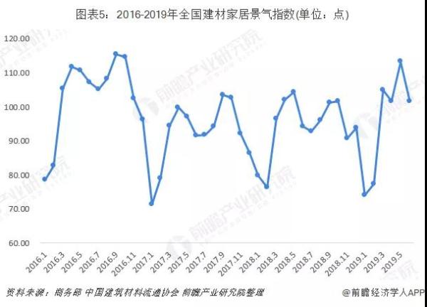 由商務(wù)部與中國(guó)建筑材料流通協(xié)會(huì)共同發(fā)布的“全國(guó)建材家居景氣指數(shù)BHI”分析可見,2019年6月份全國(guó)建材家居景氣指數(shù)(BHI)為101.54,環(huán)比下降11.71點(diǎn),同比上漲17.49點(diǎn)。